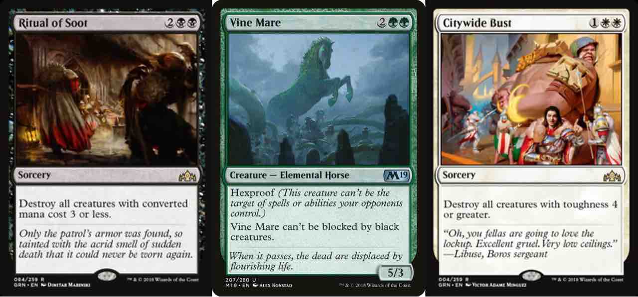 以下は「全体除去はサイズが大きい呪禁クリーチャーへのすばらしい対処手段だね!」というメッセージ共にRedditに貼られていた画像。(どちらも蔦草牝馬が死なない)
