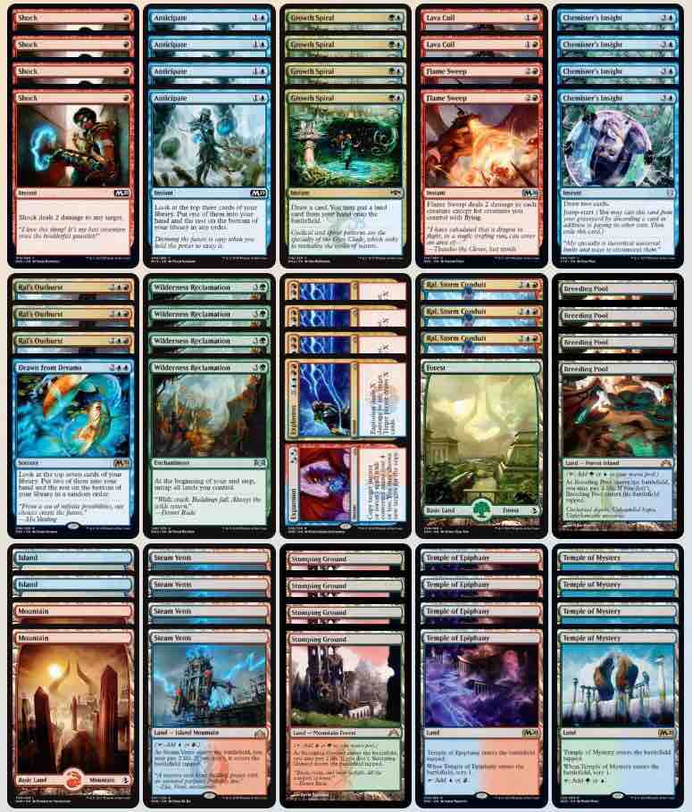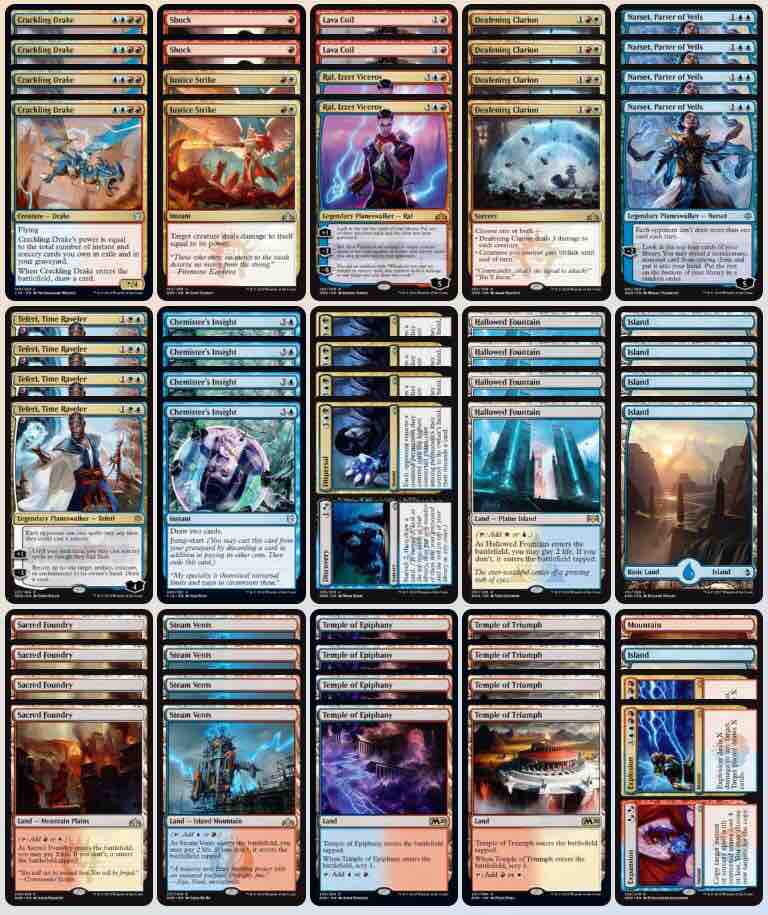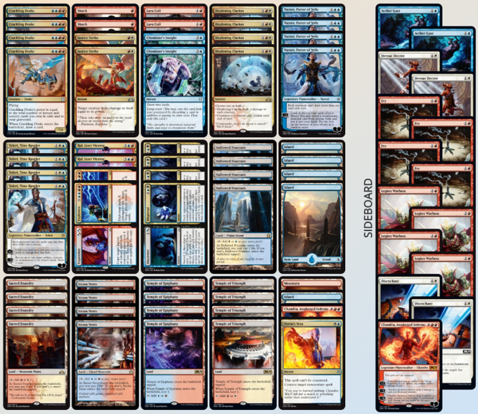 以下のChannel Fireballの記事にジェスカイ・コントロールのリストが掲載されています。Why I’m Playing Jeskai Control in Standard 2020 By Andrea Mengucci