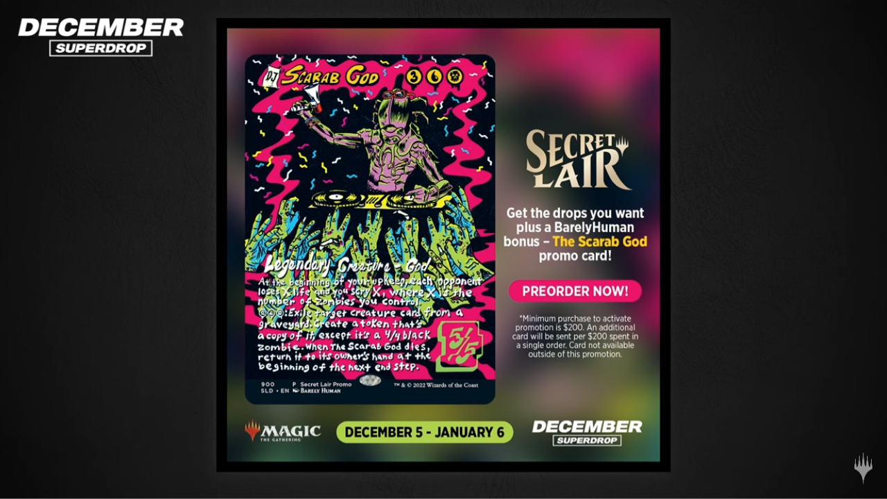 12月のSecretLAIRは200ドル買うごとに1枚、《スカラベの神》がもらえます。