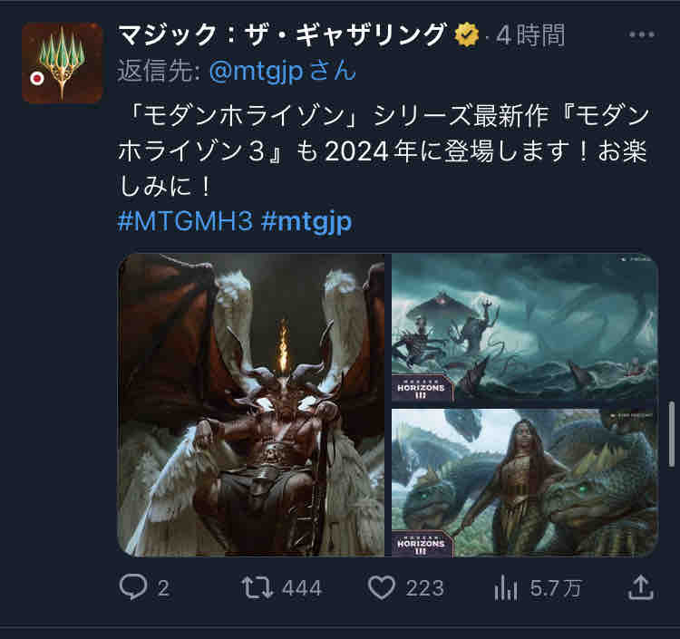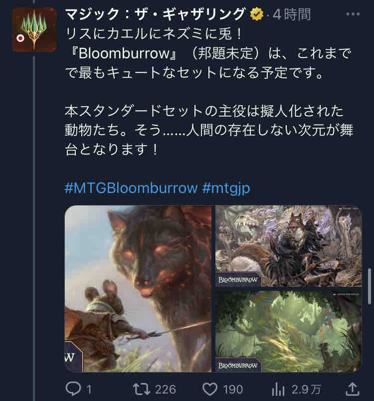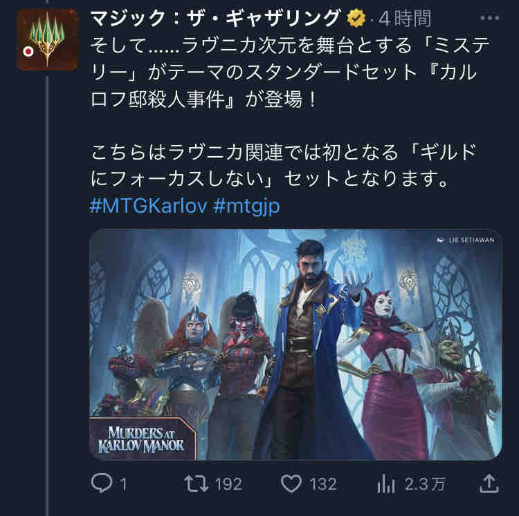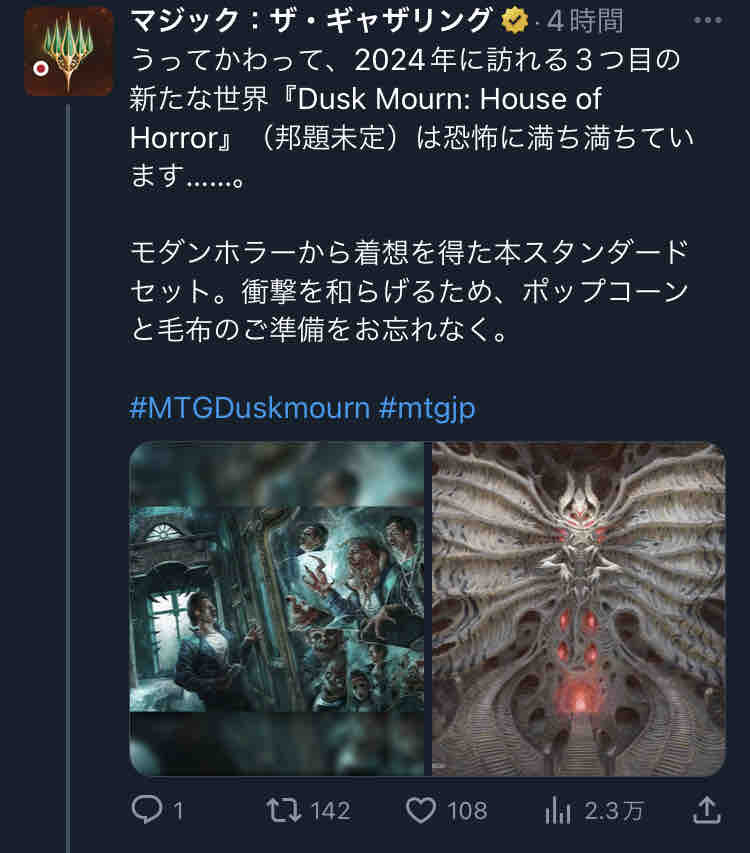 2023年08月06日 新セット情報公開(2023年から2024年) 2023年から2024年にかけての新セット情報が公開されました。2023年『エルドレインの森』から新章『領界編』へと突入するようです。2024年左から、ラヴニカリマスター スポンサードリンク カテゴリなしの他の記事 < 前の記事次の記事 > コメント コメントフォーム 名前 コメント 記事の評価 リセット リセット 顔 星 情報を記憶 コメントを投稿する