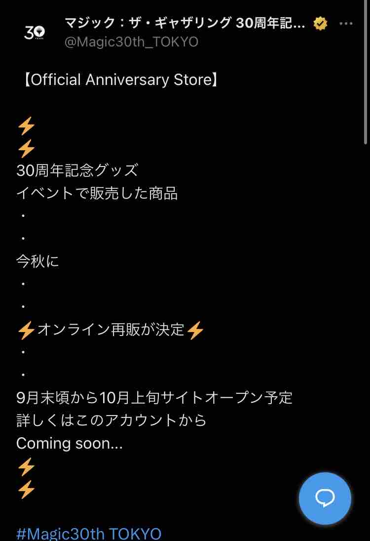 2023年09月10日 MTG30th Anniversaryグッズ通販決定 公式から、秋に再販して通販するとの発表がありました。 最初から通販するってアナウンスしてくれてたらもっと平和でよかったのにと思わなくもないですが。。 スポンサードリンク カテゴリなしの他の記事 < 前の記事次の記事 > コメント コメントフォーム 名前 コメント 記事の評価 リセット リセット 顔 星 情報を記憶 コメントを投稿する