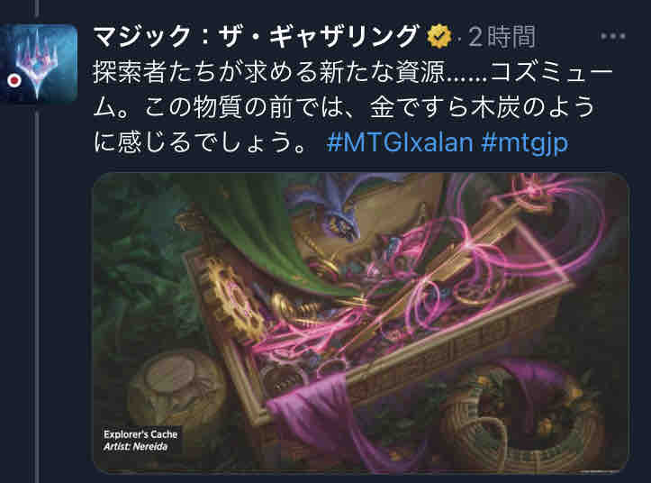 2023年09月23日 イクサラン失われし洞窟の情報が公開 ラスベガスで『イクサラン 失われし洞窟』の情報が公開されました。コズミューム•ネオンインク•フォイルスペシャルゲストカードセトブでは12パックに1枚の割合でジュラシックワールドコラボのカードが収録。全20種類。公式Twitterではないとこで拾った基本土地の画像。 スポンサードリンク カテゴリなしの他の記事 < 前の記事次の記事 > コメント コメントフォーム 名前 コメント 記事の評価 リセット リセット 顔 星 情報を記憶 コメントを投稿する