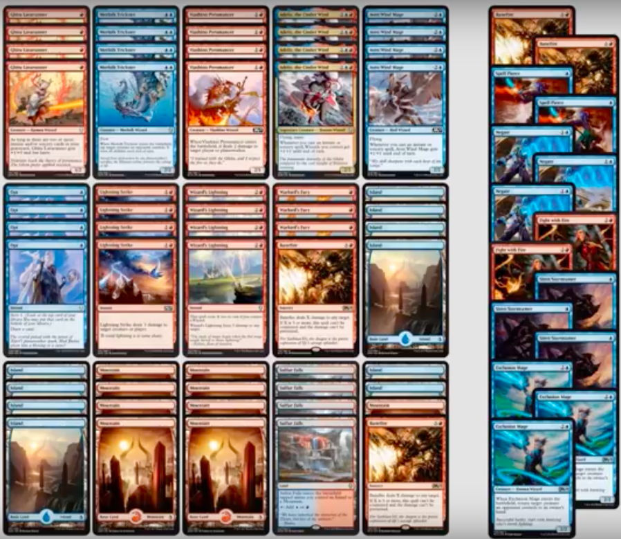 25 x 山 Creatures 4 x ずる賢いゴブリン 4 x 風雲船長、ラネリー 4 x 触媒の精霊 1 x ギトゥの年代記編者 Spells 4 x ヤヤ・バラード 4 x 火による戦い 4 x 苦悩火 2 x 力の頂点 4 x ショック 4 x 稲妻の一撃 |
